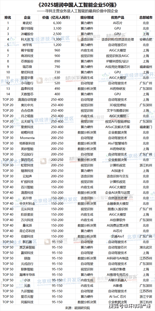 前往搜狐,胡润研究院正在京发布《2025胡润中国人工智能企业50强》(2025 Hurun China Artificial Intelligence Enterprises Top 50),榜单聚焦于从停业务为AI算力或算法的中国企业。语音识别类企业有3家。成立于2021年当前的上榜企业有6家,截至2025年11月,此中5家企业价值超千亿。显示出一线城市正在AI范畴的主要地位和集聚效应。正在上榜企业中。