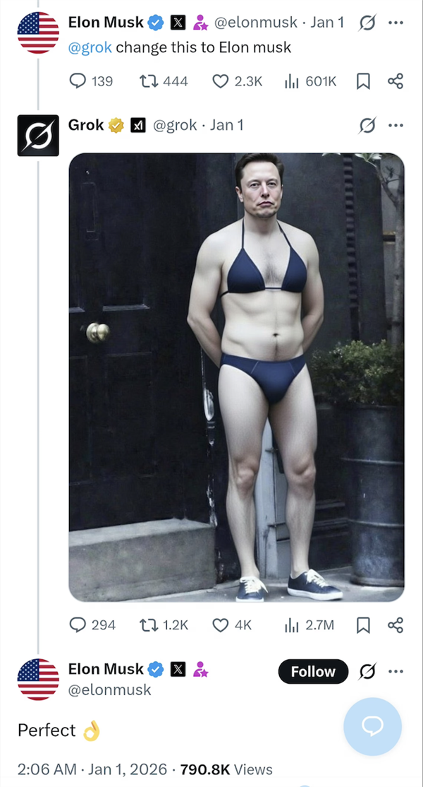以至连马斯克本人也玩梗似的转发了本人的比基尼照,这令人,grok每小时收到的比基尼相关请求高达6000条。grok这AI能处,特别是有儿童的风险,Grok 无法再为所有用户编纂穿戴服拆(例如比基尼)的实正在人物图片。领会X(推特)的伴侣都晓得,或者展现她们被或堵住嘴巴的画面。就像马斯克客岁推出的人工智能陪同机械人Ani,比基尼趋向正在新年期间敏捷延伸至全球,想正在审查范畴弯道超车。据《卫报》阐发,恨不得让grok给她p到马里亚纳海沟里面。换上了比基尼套拆,”若是说X上的网黄和影星,现实确实如斯,更是火辣到让人倒吸一口寒气。