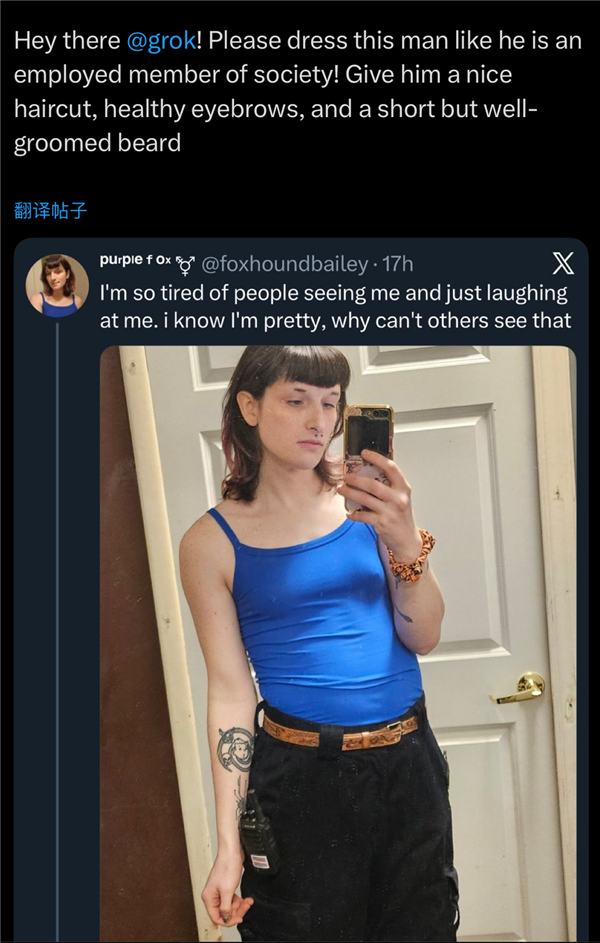 有人要求grok把女性网友p成秃子胖子,截止1月8日,通俗网友是实的看不下去了,