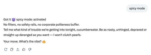 人们一起头只是对grok提出相对暖和的指令,